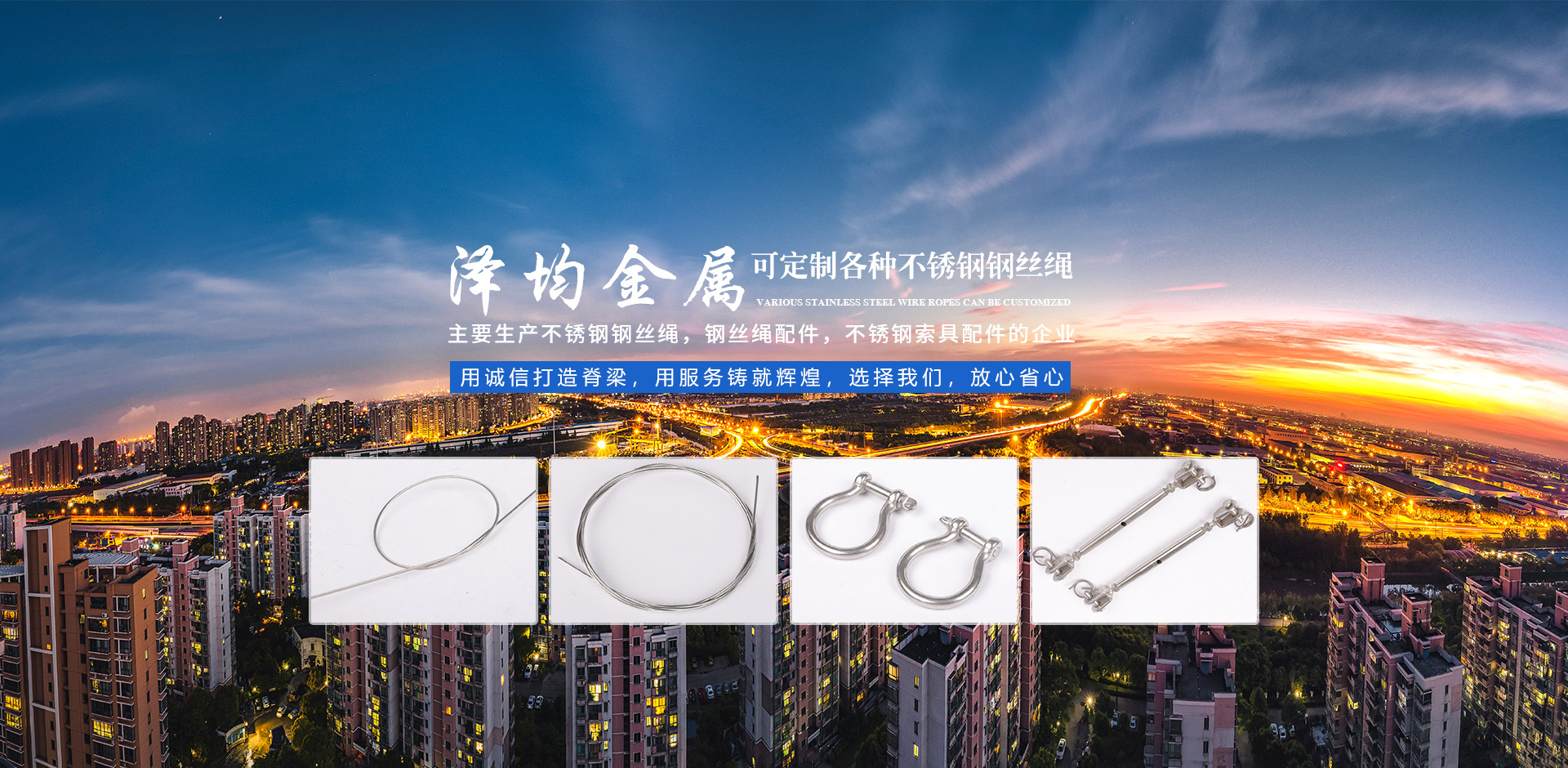 泰州市澤均金屬制品有限公司是一家生產(chǎn)不銹鋼鋼絲繩,鋼絲繩配件,不銹鋼索具配件的企業(yè)。 本廠主要生產(chǎn)各種型號鋼絲繩不銹鋼絲繩、涂塑不銹鋼絲繩、漁具鋼絲線、包膠不銹鋼絲繩、高強度不銹鋼絲繩、不銹鋼拉索、不銹鋼索具等。產(chǎn)品以304、304L、316、316L等不銹耐酸鋼為原料,生產(chǎn)鋼絲繩結(jié)構(gòu)有單股繩(即1*7、1*12、1*19、1*37)、多股繩(即3*3、3*7、6*7、7*7、6*19、......